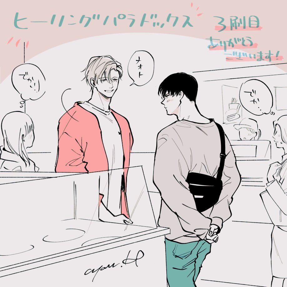 #ヒーリングパラドックス 3刷目の重版が決まりました!たくさんご覧になっていただきありがとうございます…!✨💪 続編も連載中なのでよろしければQpaをチェックしていただけると嬉しいです! イラストはデート中の二人➰💆♂️👔 twitter.com/qpa_blinfo/sta…
