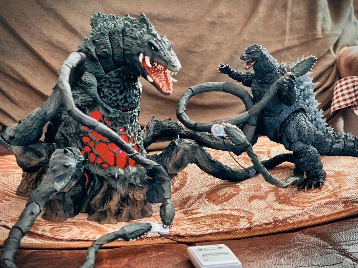 #夜のフィギュア撮影会 お題『危険』 危険すぎる植物怪獣ビオランテ!靖子もビックリ!?レッツ ルヴァンパーティー!😆(←改造で触手を追加) #ビオランテ #ゴジラ #Godzilla #ソフビ #ムービーモンスターシリーズ #ムビモン #ビオゴジ #ゴジラVSビオランテ