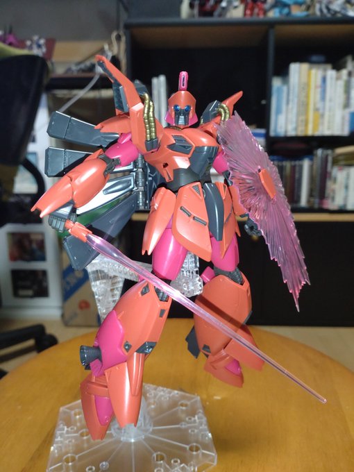 まったり模活🤗 #ビギナギナ 完成しました〜 #ベラロナ オレンジとピンクの奇抜なカラー が魅力的な機体。エングレービング のシールが付属してます。 クロスボーンバンガードの機体は 一言で「異形」ですね🥰よき #ガンプラ #ガンプラ好きと繋がりたい #ガンプラの画像貼るとRTされると聞いて