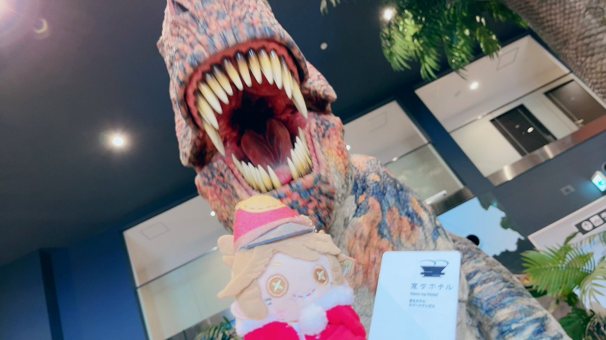 ラグコスの度に変なホテルへ泊まるからビクぬいちゃんと恐竜の🦖距離が近くなっていく〔ような気がする〕 冬のラグコスも大変お世話になりましま🙇♀️ ハウステンボスといい、ラグーナテンボスといい、、本当にイルミネーションが最高おぶざいやーでした😭 #ラグコス #ラグコス2021 #ビクぬいの居る風景 twitter.com/victorlovekait…