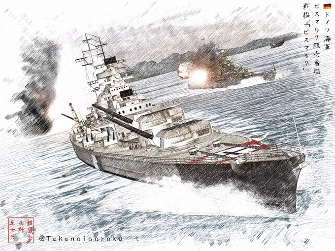 #艦これ版深夜の真剣お絵描き60分一本勝負 #艦これ版真剣お絵描き60分一本勝負_20230214 #艦隊これくしょん #艦これ #ビスマルク #ビスマルク進水日 うるし原智志ビスマルク ( ´ω` )