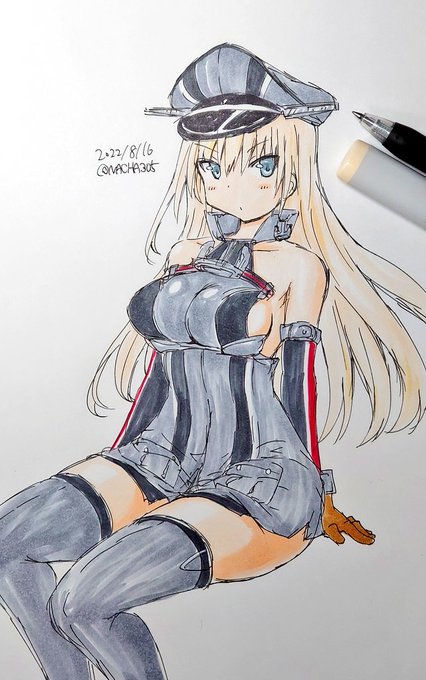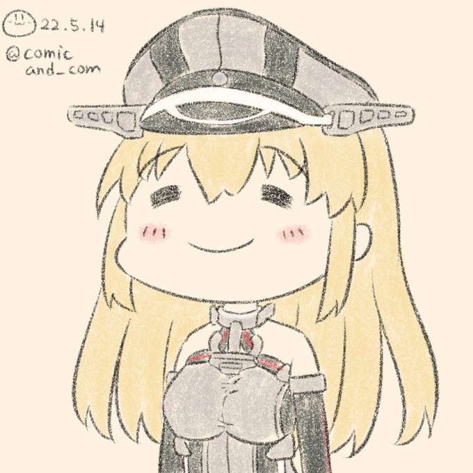 さあ、かかってらっしゃい! 突撃だあ~!6( ˘ω˘ )9ウオオオ ★連続1429日目 #艦これ版深夜の真剣お絵描き60分一本勝負 #艦これ版真剣お絵描き60分一本勝負_20220514 #ビスマルク #艦隊これくしょん #艦これ
