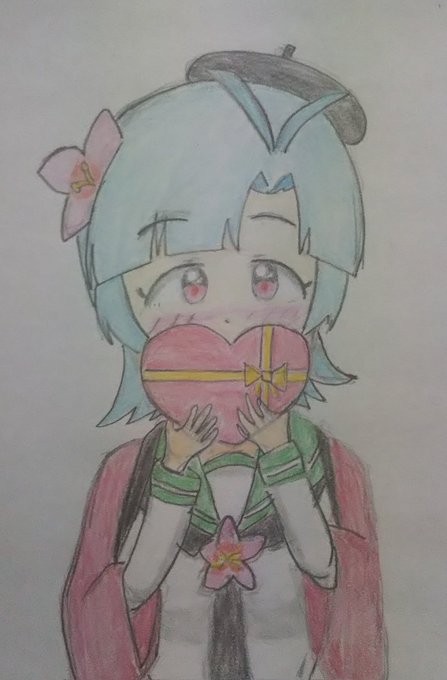 #たまプラたん 『チョコレート、受け取ってくれるかしら…?』 #ビッカメ娘のバレンタイン (チョコレートを描かない) #バレンタインイラスト #ビッカメ娘 ( #ナイセン ) #模写 #ビッカメ娘を描き隊