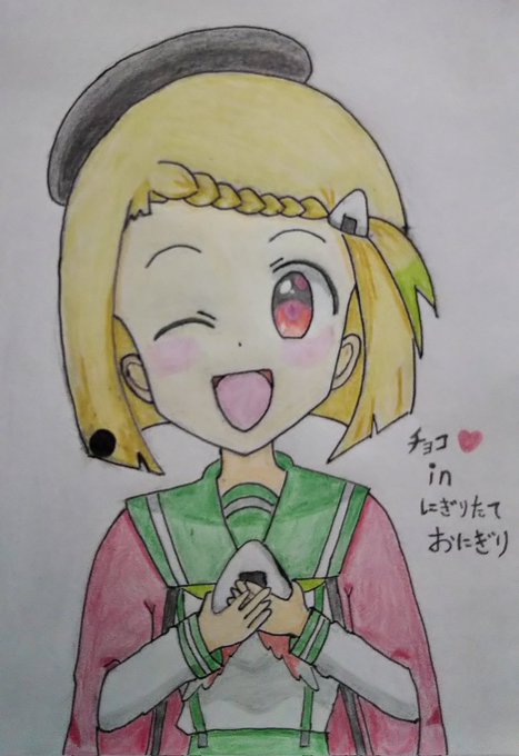 #2月1日はにいがたたん擬人化4周年 #にいがたたん 、おめでとうございます!🎉🎂🍙✨🎁✨ お祝いにイラストを描きました。🐈️ にいがたたんのおにぎり愛が好きです。 #ビッカメ娘のバレンタイン #バレンタインイラスト #ビッカメ娘 ( #ナイセン ) #ビッカメ娘を描き隊