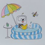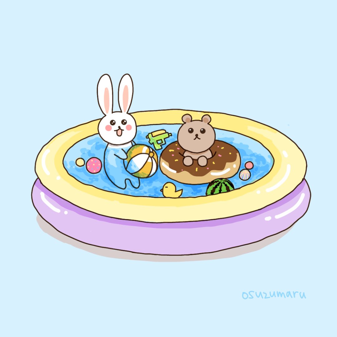 むしあっついのでビニールプールで涼むcatとフレンズ‼︎ #イラスト #illustration #イラストレーター #絵描きさんと繋がりたい #procreate #猫好きさんと繋がりたい #シュール #ねこ #猫 #cat #うさぎ #ビニールプール #お手軽に水遊び