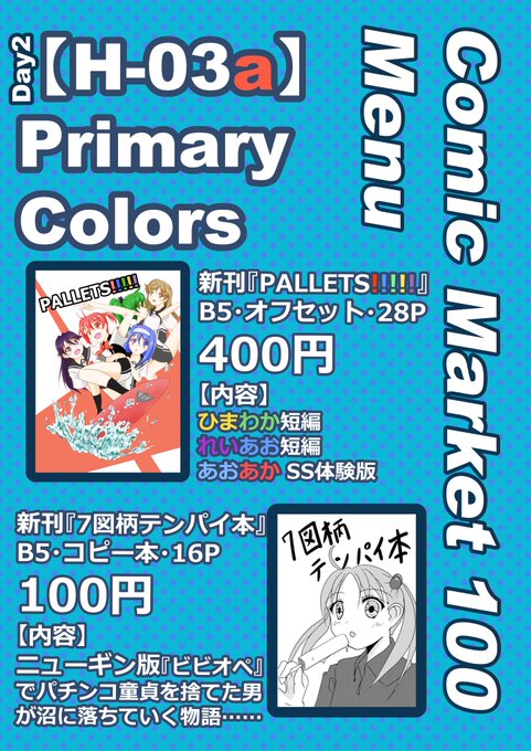 #C100 新刊入稿しました。不備なければ出ます。 #ビビッドレッド・オペレーション 本でわかひま短編(2枚目)、れいあお短編(3枚目)、あおあかSS短編プレビュー版の2.5作品で本文24ページ400円です。 当日までにCR #ビビオペ 体験記でコピ本作れればと思ってますのでよろしくおねがいします。