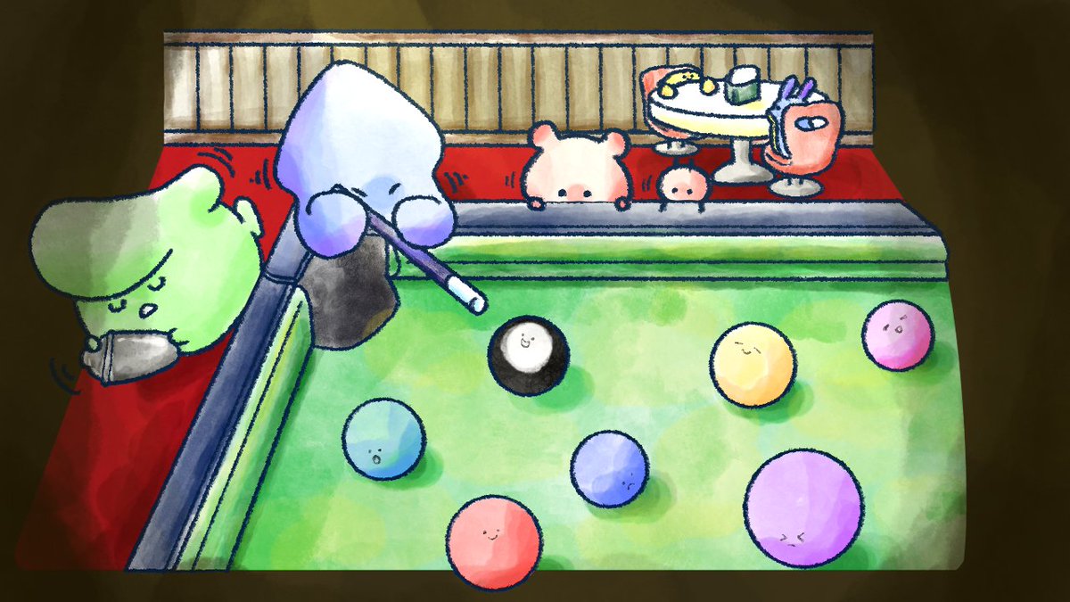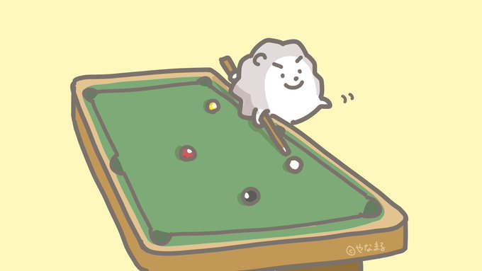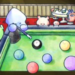 本日は「#ビリヤードの日」ですよ♪ ころん、両足が床から離れると反則ですよ🫣! #イラスト #今日は何の日 #絵描きさんと繋がりたい #イラスト好きさんと繋がりたい #ゆるいイラスト #illustration