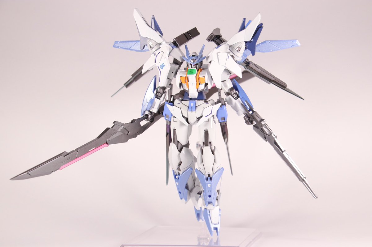 ダブルオースカイメビウス組み終えたぁっ! ハイマットフルバーストモード、 撮る角度難しいな…( ̄▽ ̄;) #ガンダム #ガンプラ #ガンプラの画像貼るとRTされると聞いて #ビルドダイバーズ #ビルドダイバーズリライズ #ダブルオースカイ #ダブルオースカイメビウス