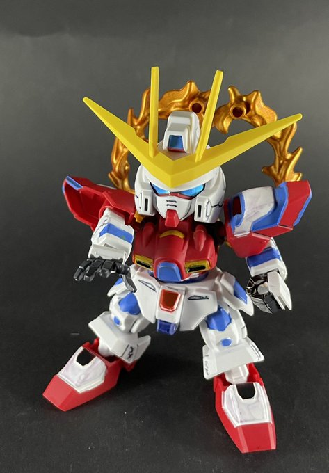 素組みして放置していたSDトライバーニングガンダム、完成しました! 今回はガンダムマーカー縛りでスミ入れもガンダムマーカーを使いました😄 #ガンプラ好きと繋がりたい #ガンプラの画像貼るとRTされると聞いて #ビルドファイターズトライ #SDガンダム #トライバーニングガンダム