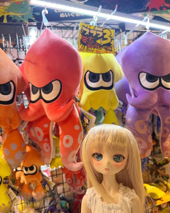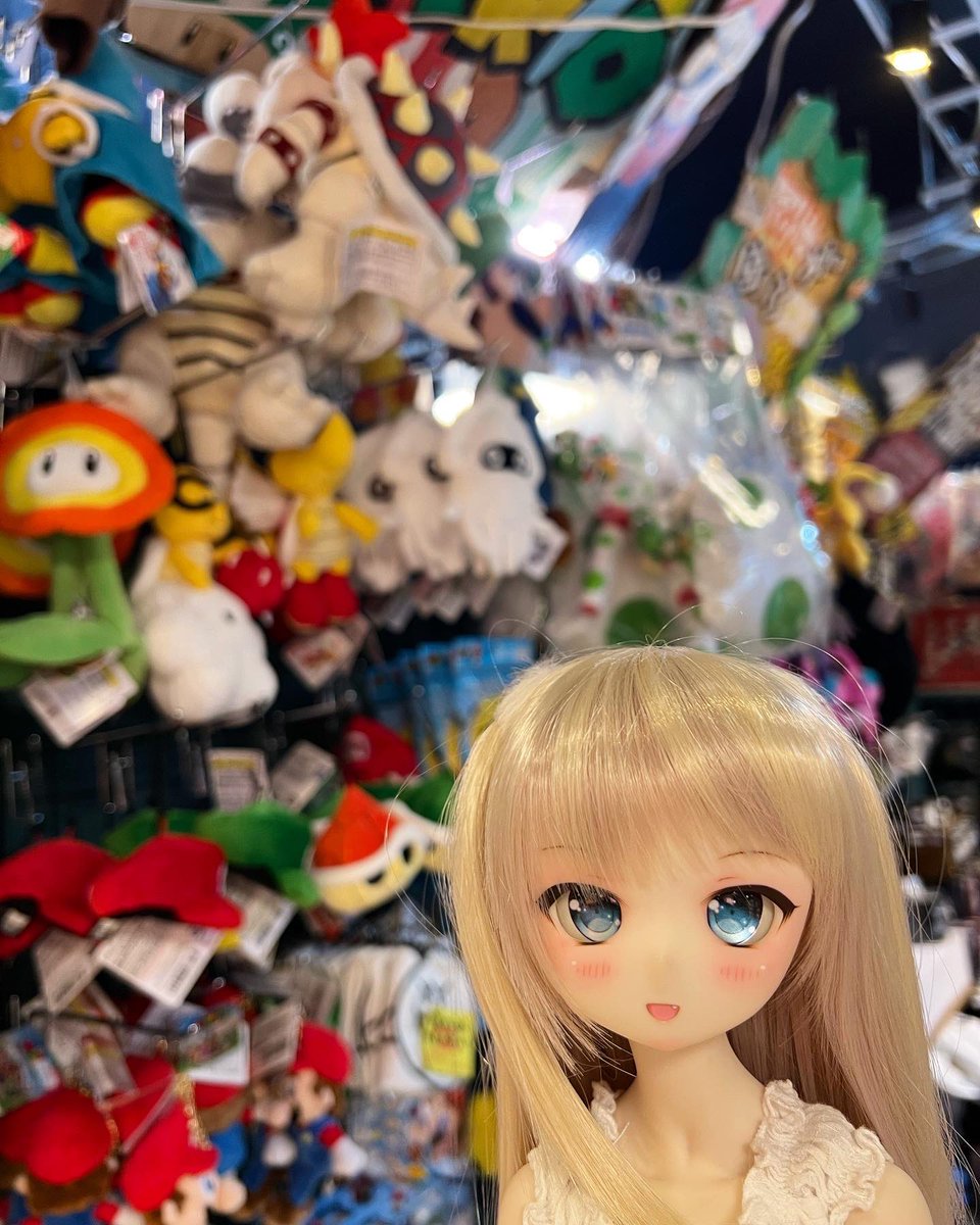 鈴音と一緒にビレッジヴァンガードに買い物に来ています☺️💕スプラトゥーンやカービーやポケモンなど、色んなぬいぐるみが壁一面に並んでいて、鈴音は大喜びです🙌🥳🎉 #もこもかっこ #THユカリnail #MDDはいいぞ #ビレバン #ビレッジヴァンガード #ポケモン #スプラトゥーン #カービィ