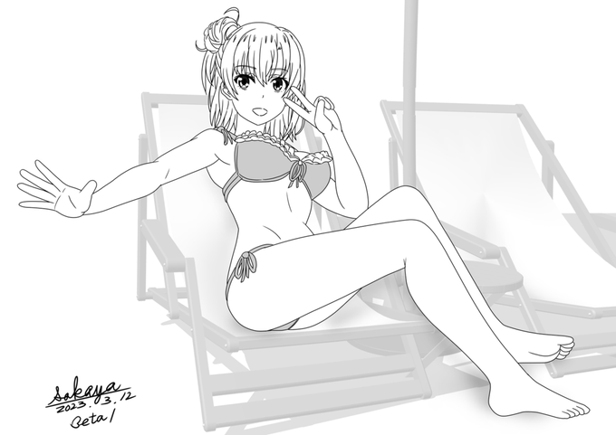 #やはり俺の青春ラブコメはまちがっている #俺ガイル #由比ヶ浜結衣 #ビーチ #水着 AFGフィギュアを参考に描きました #リドローOK sketch.pixiv.net/items/51970227…