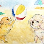 【ぷくりいぬ】7/31 #ビーチの日 おはよー☀️ 今日はみんなとビーチで遊んでるよ!🐶 ビーチフラッグスっていう競争をヴィンスくんと…全然勝てない💦 へとへとだよぉー #イラスト #絵描きさんと繋がりたい #イラスト好きさんと繋がりたい #ゆるいイラスト #illustration #今日は何の日