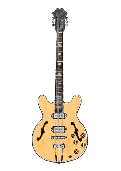 今日は #ビートルズの日 なので以前描いた #JohnLennon と #GeorgeHarrison の #ギター 2本を再掲。ルーフトップ・コンサートで使用していたものです。 #TheBeatles #イラスト