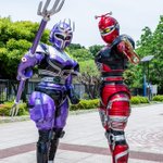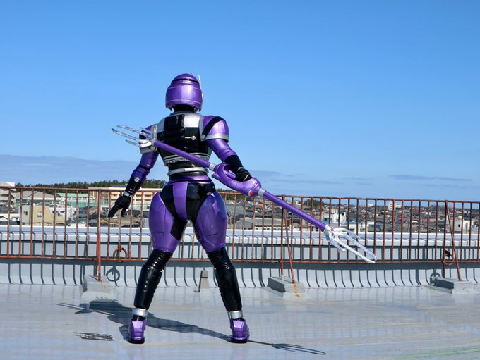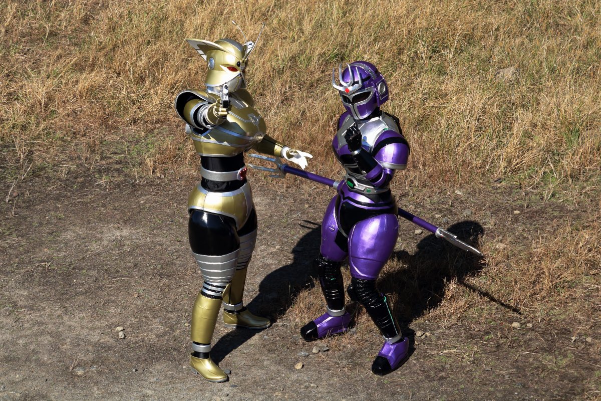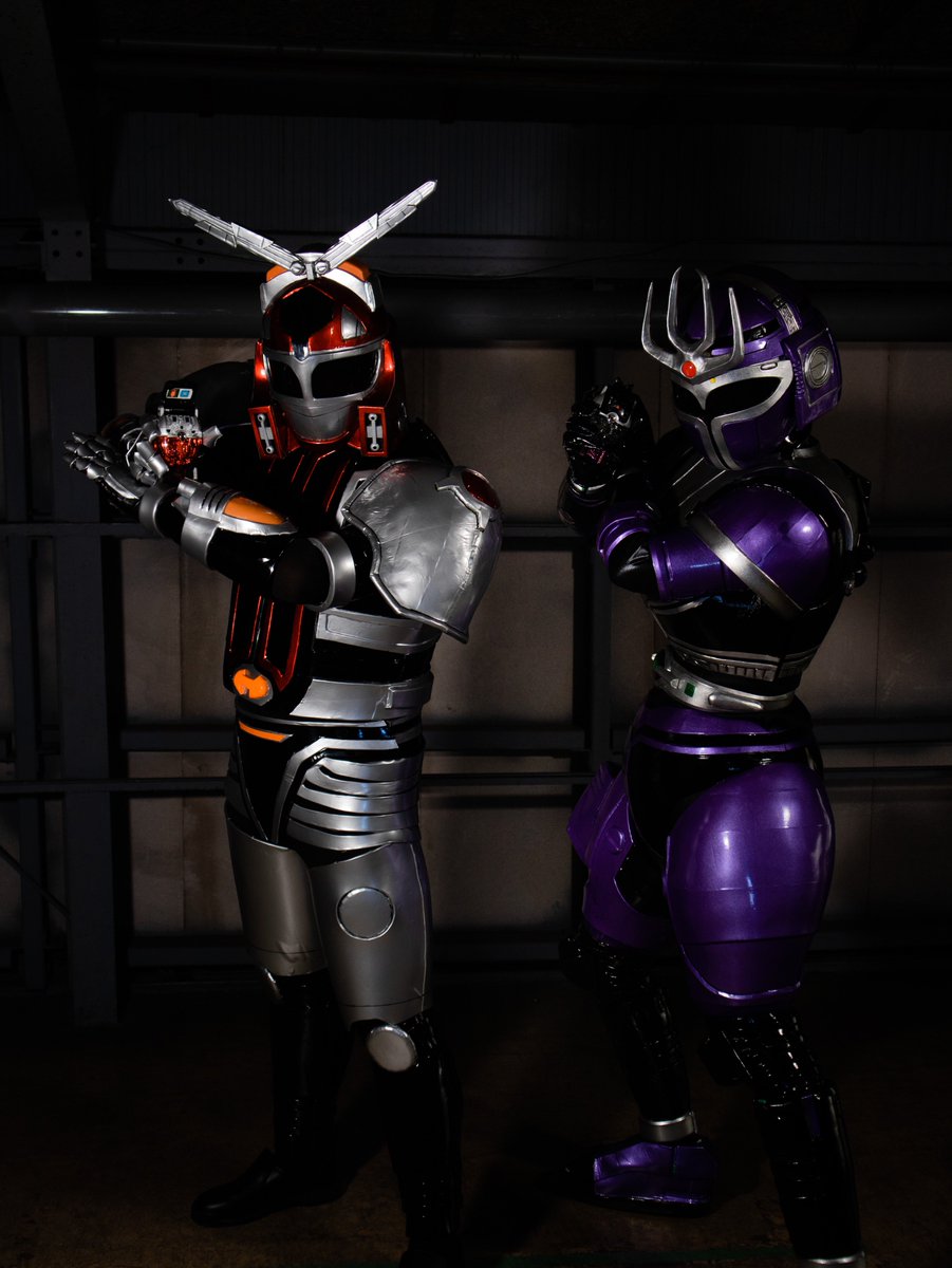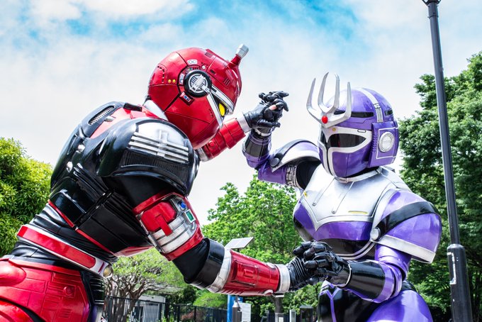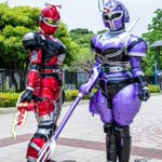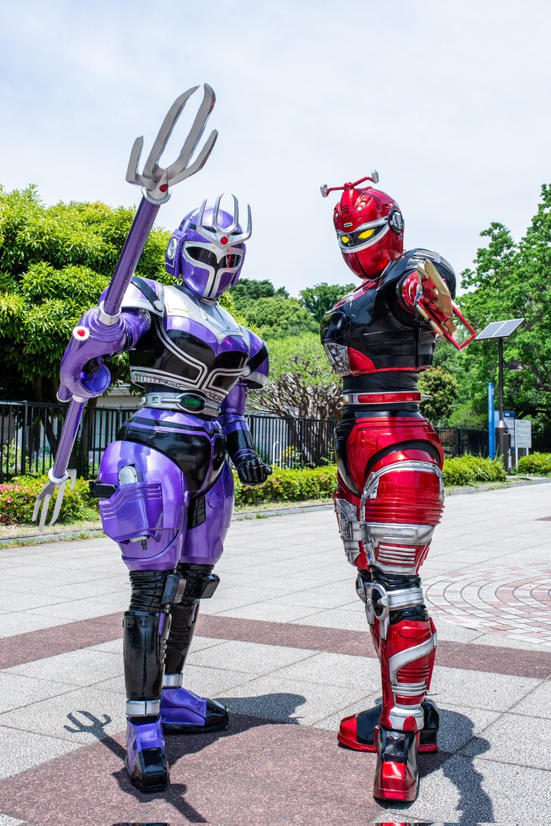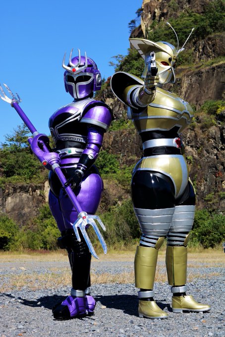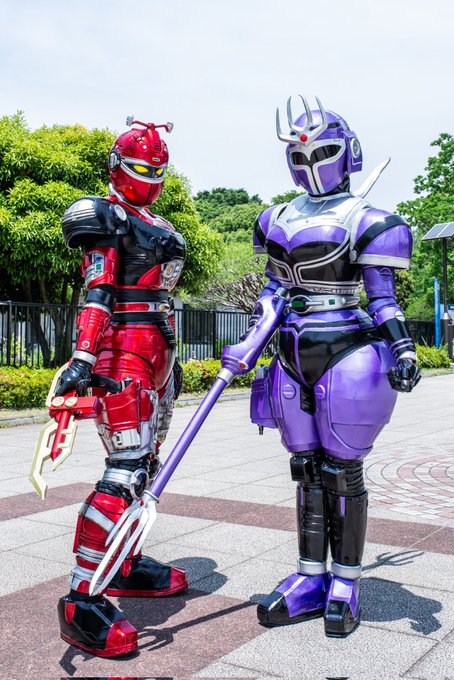 Cosplay 新旧ビーファイター✨ 「女の子だからって油断しないでね^_-☆」 📸→ @osa_gekka 🐞🟣→自分 🟥&スーツ作成・持ち主→ @BFtento_redle #BFカブト #ビーファイターカブト