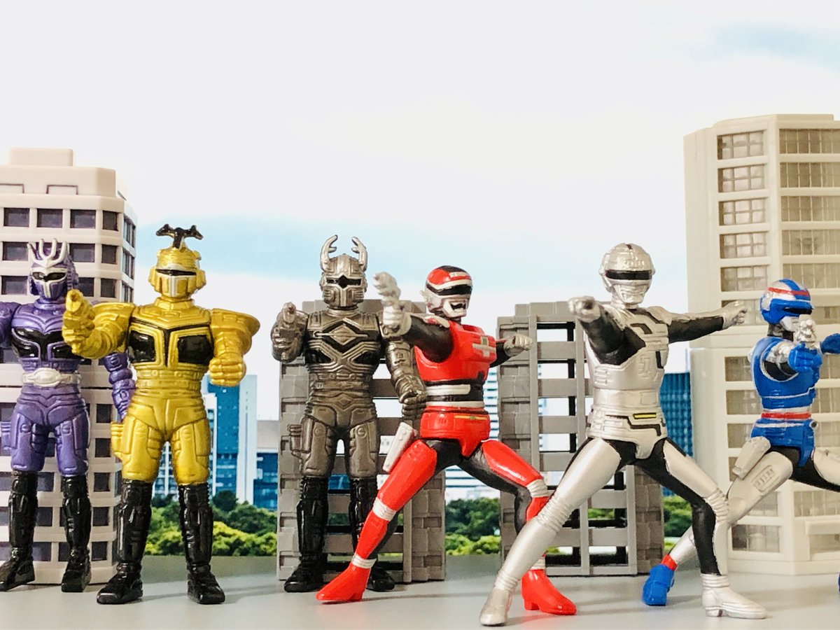 #おもちゃ撮影会 第827回 05/20(金) テーマ「クロスオーバー2」 #メタルヒーローシリーズ #宇宙刑事ギャバン #宇宙刑事シャリバン #宇宙刑事シャイダー #BFカブト #ビーファイターカブト #オモ写 BFカブトvs 3人の宇宙刑事 ギャバン・シャリバン・シャイダー (if設定です😊)