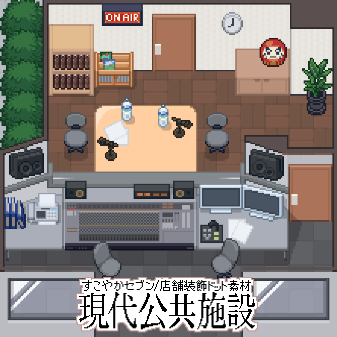 郵便局、ラジオブース、購入して即そのまま使える店舗素材販売開始しました。 kenhichi.booth.pm/items/3769410 #ピクスク #pictsquare #ピクスク素材 #ドット絵 #すこやかセブン