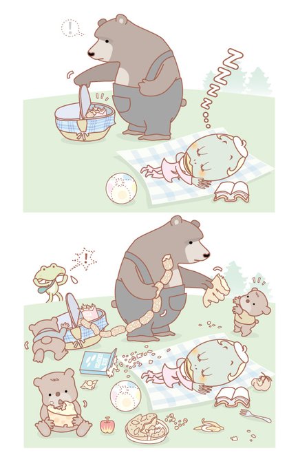 今日はみんなで #ピクニック🌞 クマのジェイソンは気になるものをみつけると足が止まってしまうし、ピアーズはカバンが重たすぎるみたいでみんなから少し遅れています💦 「もうちょっとでおべんとうの時間だよ!」 「「おべんとう!」」 ふたりとも元気が出たみたいですね♪ #シルバニアファミリー
