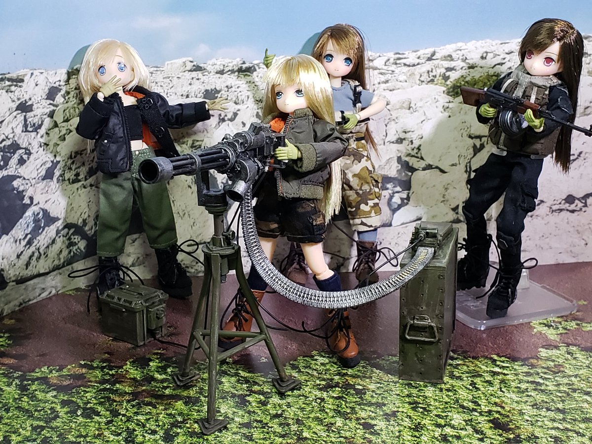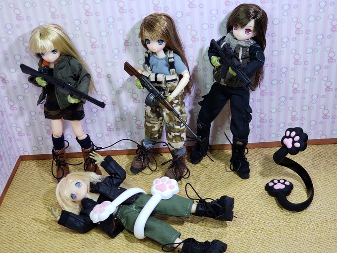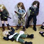 #今夜のドール撮影120分一本勝負 お題『1/12』過去 あいか隊長率いる我が傭兵チーム ただいま訓練中~😣💦💦💦 ダダダダダ..... #ピコえっくすきゅーと #アゾカツ #リトルアーモリーを装備