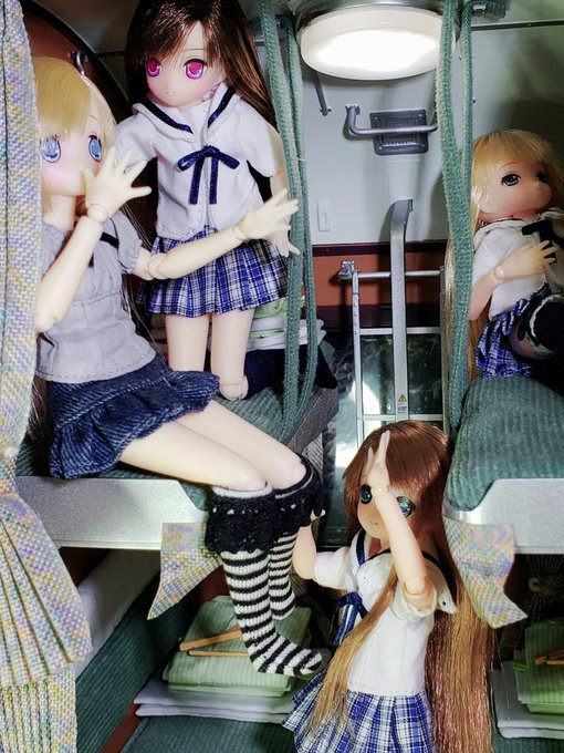 #今夜のドール撮影120分一本勝負 お題『とうしんだい』過去 fompさんの「三等寝台車(B寝台)」に勝手に便乗しちゃうっス😅 B寝台車の中で、大はしゃぎ~な面々...😆💦💦 #ピコえっくすきゅーと #アゾカツ #TOMYTEC