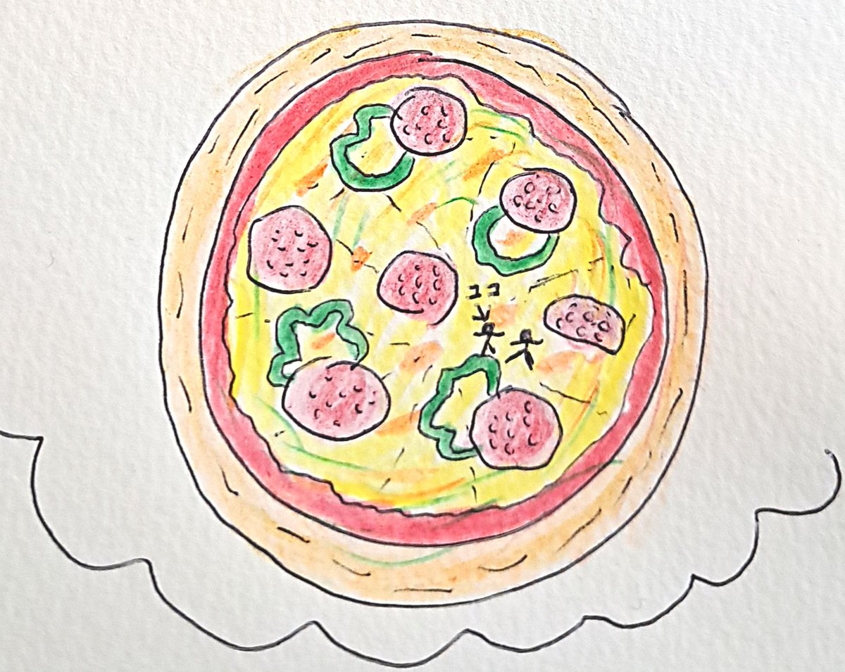 猫のミケランジェロ 過去絵がまたあったのでのせておきます(*´▽`*) #猫のミケランジェロ #過去絵を投げて絵を描いた気になろうキャンペーン #柴犬 #ピザ #イラスト好きと繋がりたい #絵描き #猫