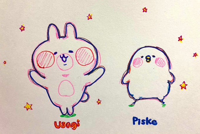 カナヘイさんのピスケとうさぎ。ピスケのクチバシの黄色を使うためにほっぺを濃いピンクにせざるを得なかった。 #ドット絵 #pixelart #edgetouch #ファミコン風ドット絵 #ピスケとうさぎ #カナヘイ