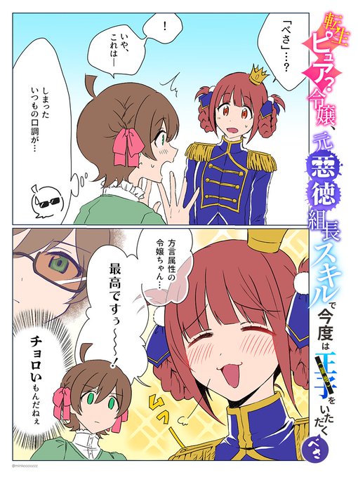 転生した木下組長がうっかり方言で喋ってしまった時のひとコマ 個人的にピュア?令嬢にデレデレな亜利沙王子が見たいです(転生ネタ漫画に巻き込んでごめん…) #ミリオンキャスティング #ピュア令嬢ひなた略してピなた #ふおお王子