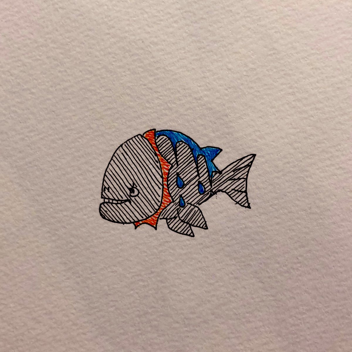 オテンキピラニアです。 晴れてる時は明るく元気な好青年だけど、雨が降ると自虐的で誰かの愚痴をずっと言ってるヤツになる。台風が来ると暴力的になる。 嫌われている。 #イラスト好きさんと繋がりたい #絵描きさんと繋がりたい #オリキャラ #お天気 #ピラニア