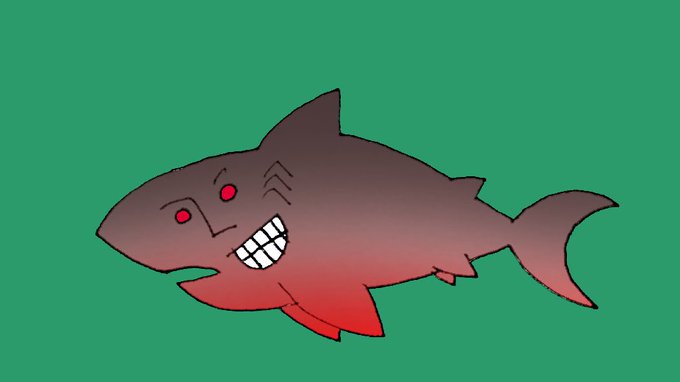 コロナ前に見たビニール袋に氷結5缶ぐらい入れて電車でずっと呑んでたお姉さん、元気かなぁ… 今日はピラニアカラーのサメです。凶暴以外考えられないですね #イラスト好きと繋がりたい #絵描きさんと繫がりたい #オリキャラ #サメ #ピラニア