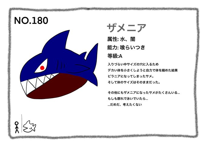 コロナ前に見たビニール袋に氷結5缶ぐらい入れて電車でずっと呑んでたお姉さん、元気かなぁ… 今日はピラニアカラーのサメです。凶暴以外考えられないですね #イラスト好きと繋がりたい #絵描きさんと繫がりたい #オリキャラ #サメ #ピラニア