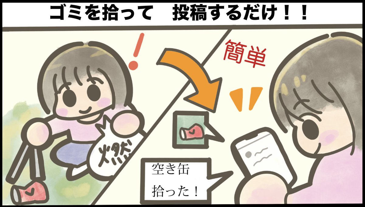 2. ゴミ拾いで世界と繋がるSNS『ピリカ』 初めて4コマ漫画に挑戦しました! 4つにまとめるって難しいですね… 魅力は伝わったでしょうか? #イラスト #絵柄が好みっていう人にフォローされたい #絵描きさんと繫がりたい #4コマ漫画 #ピリカ #Pirika