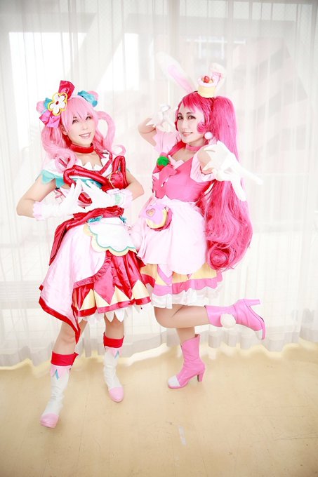 【コスプレ写真】 ピンクキュア食べ物ペア🎀💕💓💗 キュア🍙プレシャス🌾 @myooooooga キュア🎂ホイップ🐰 たまま 📸 @ken_hakaishi #ピンクプリキュア20th_ANNIVERSARYあわせ