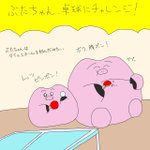 本日、ぶたちゃんは卓球にチャレンジ🏓 漫画「ピンポン」は名作ですが、ペコとの共通点はお菓子を食べることぐらい…🍭がんばれ、ぶたちゃん‼️ #イラスト #イラスト好きな人と繋がりたい #絵描きさんと繋がりたい #ピンポン #ばかぶたちゃん