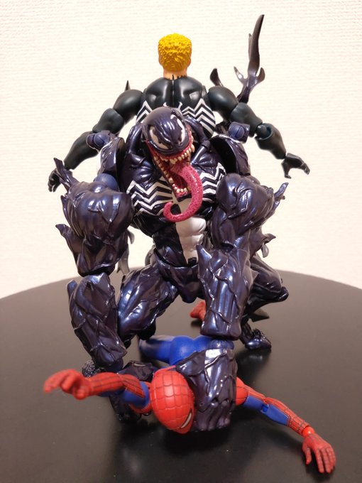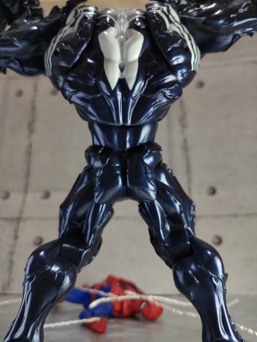 #夜のフィギュア撮影会 7/18『危険』(遅刻) 踏まれた足から、掴まれた首からシンビオートの侵蝕が進む …危険な食事の始まりだ 「なぁスパイディー、今日はどんな感情を食わせてくれるんだ?」 #オモ写 #MAFEX #ヴェノム #ピーター・B・パーカー #アメイジングヤマグチ