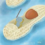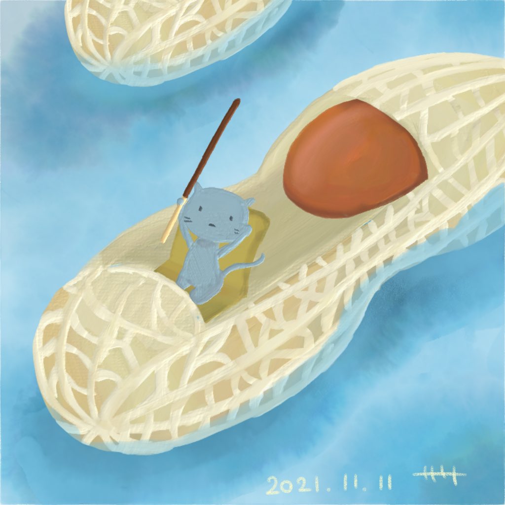 ピーナッツの日なので、ピーナッツの船に乗るねこくんを描きました!! ポッキーの日というのが頭から離れなくて、手にはポッキーがあります!今日は記念日が多すぎて悩みました😅 #イラスト #一日一絵 #illustration #art #イラスト好きさんと繋がりたい #ピーナッツの日 #ポッキーの日