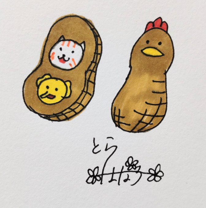 おはようございます!! #ピーナッツの日 ことら、ぞうたんピーナッツ!! ニワちゃん1人ピーナッツ😂 今日も素適な金曜日を〜🤗 #絵描きさんと繋がりたい #みんなで楽しむTwitter展覧会 #イラスト #油性ペン #マッキー