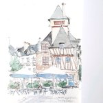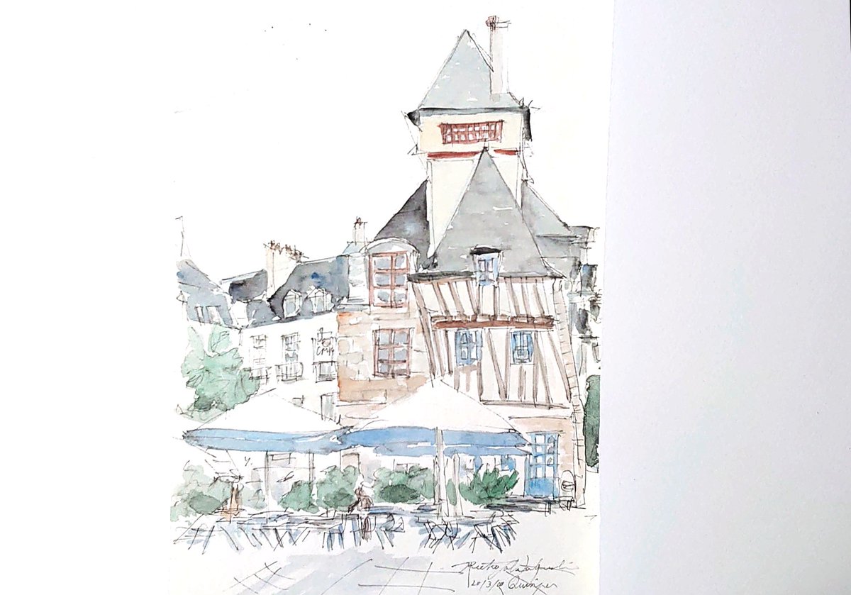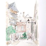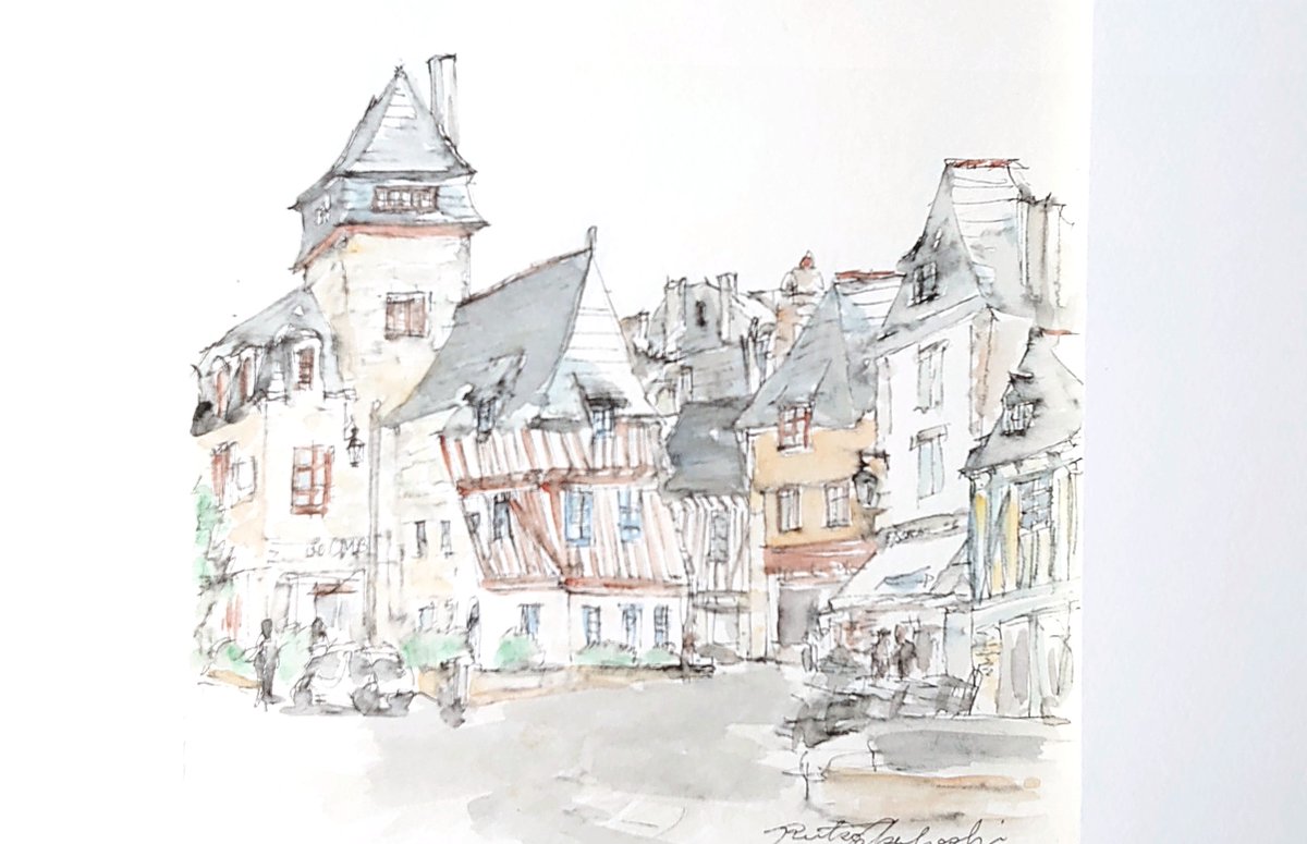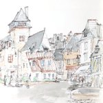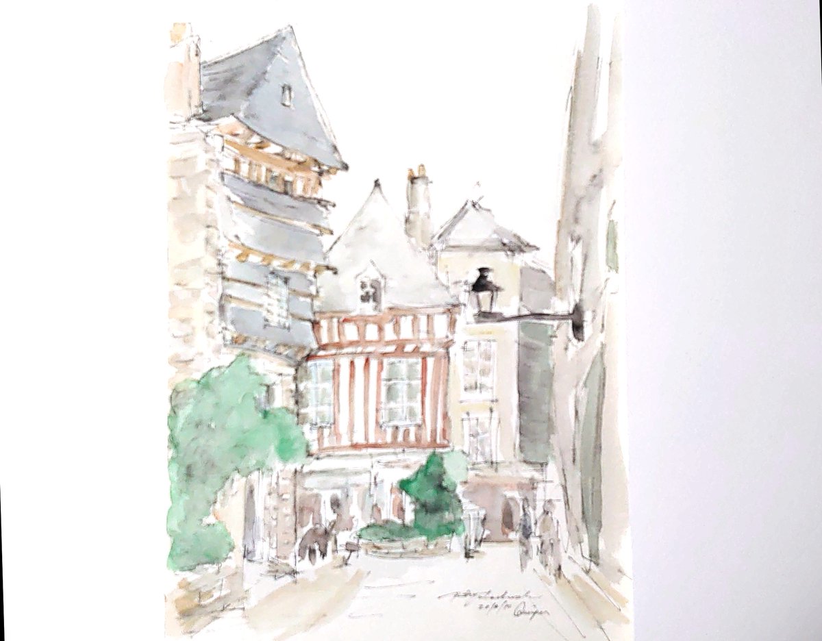 #りえこさん冒険の思い出 その473 フランス。ブルターニュ地方のカンペールの旧市街は、まるでおとぎの国。友人がパリから移り住んだので時々訪れるようになった〜かな? #絵 #人形 #旅 #水彩画 #スケッチ #watercolor #フはランス # minne.com/@ritakahashi4