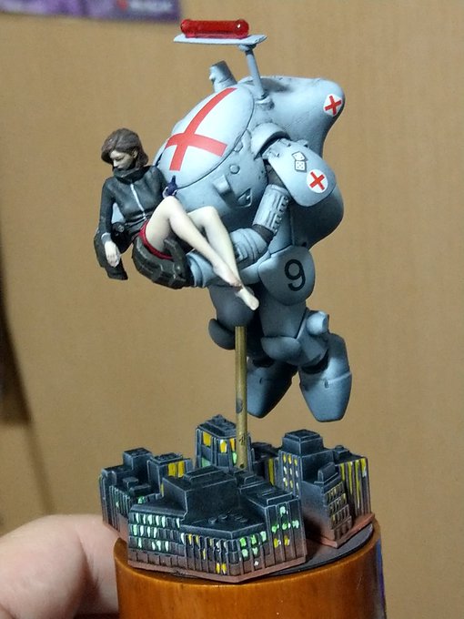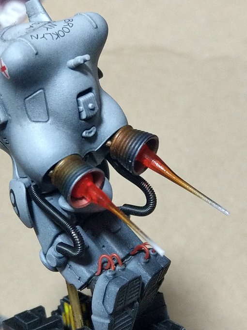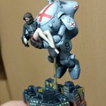台座にビルを追加したので、ファイアボール置いてみました。 まだ、付いていないパーツもありますが、当初のイメージがだいぶ形になりました! #マシーネンクリーガー #maschinenkrieger #ファイアボール #ガチャーネン