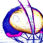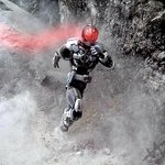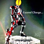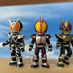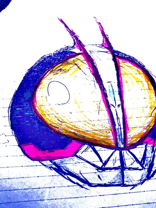 #仮面ライダーファイズ #イラスト フィギュアの #ファイズ の画像参考に 主に赤・黒(に近い茶)のコピック 目のぐるぐるはクレヨン的なもので 最後に修正液で仕上げ (修正液ない方がゆる絵ぽくて良いかも?)