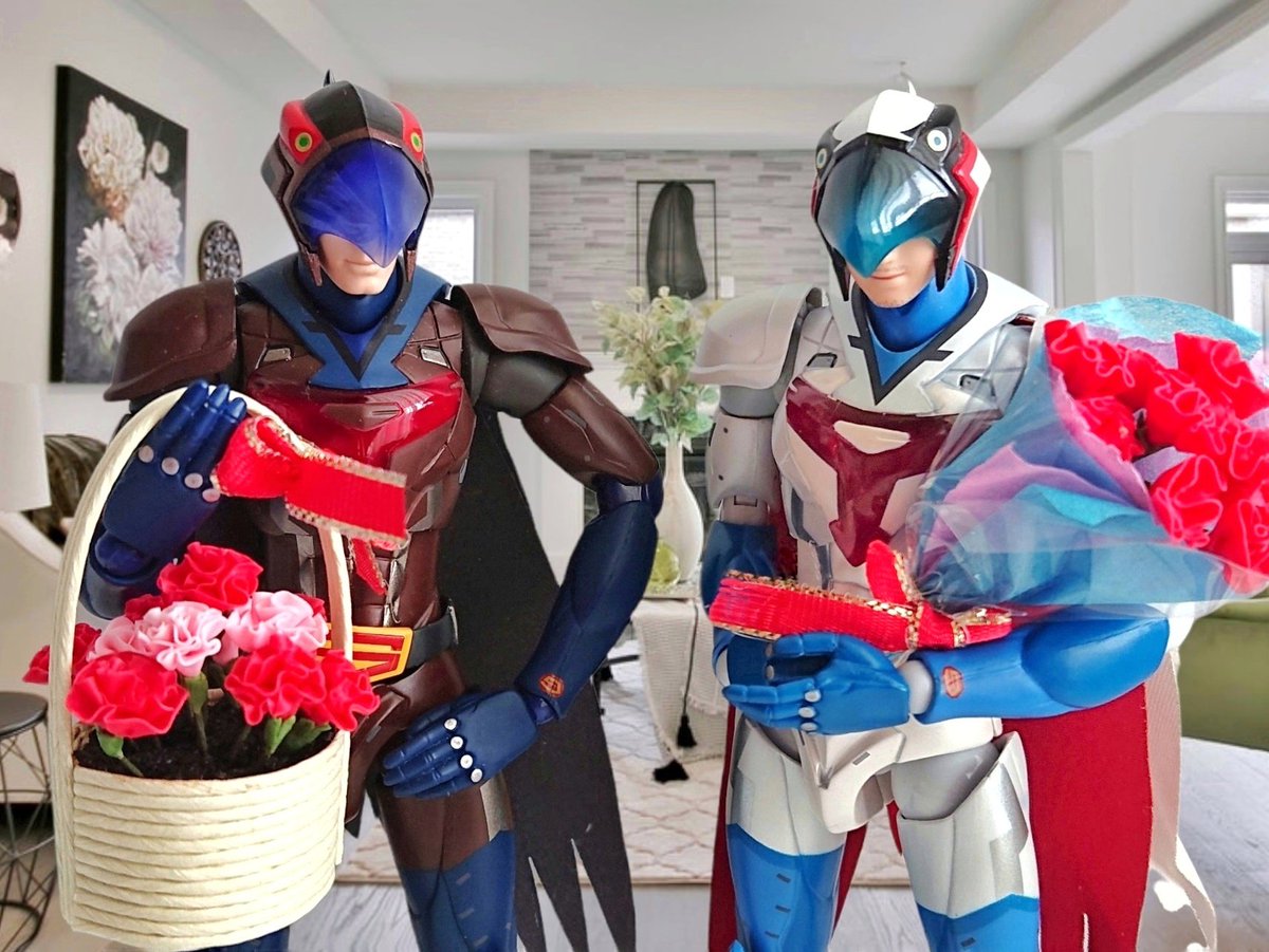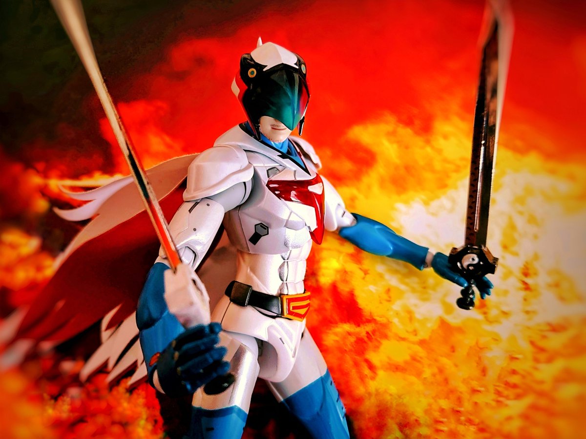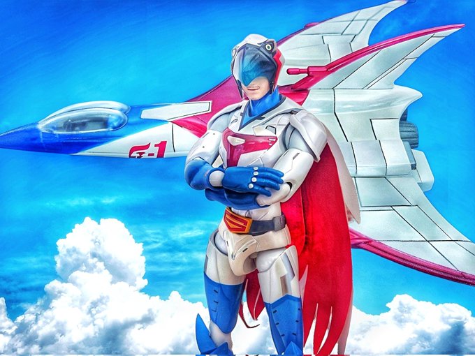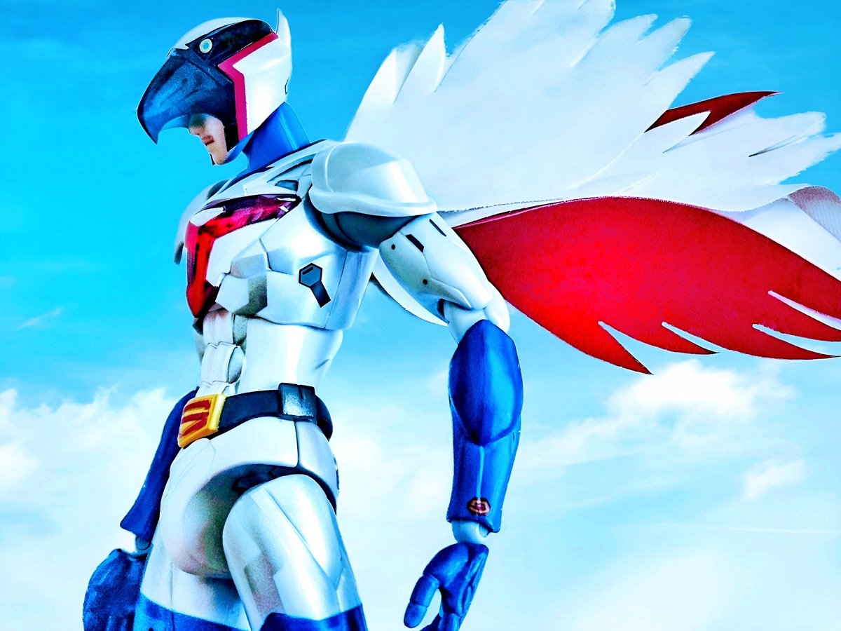 #おもちゃ撮影会 4月21日テーマ「白3」 白い翼のガッチャマン♪ 背景を色々と考えましたが、やっぱり青い空の背景が一番似合いました😊 #千値練 #ファイティングギア #インフィニティフォース