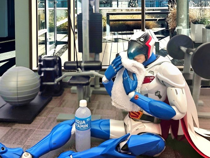 #おもちゃ撮影会 5/31テーマ「訓練」 わが家の健さんですが、のんびり暮らしているように見えるかもしれませんが、常日頃から訓練もしっかりと行っています💪✨今日もたくさん汗を流していました😊 今回はタオルのシワ?たるみ?をわざと出すのが一苦労でした😥 #千値練 #ファイティングギア