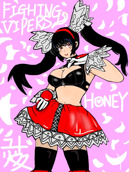 ファイティングバイパーズのハニー。 衣装破壊は低学年には刺激的すぎた。20年先を行くデザインですな。ほぼ二重人格キャラも良し。KOFASのコラボがFVでハニー、ラクセル、トキオなら廃課金でした。 #イラストリウス #ファイティングバイパーズ