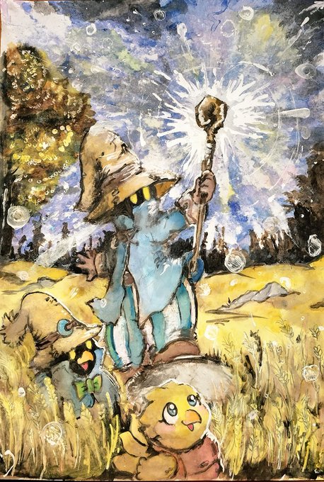 #ChocobosDungeon #ビビ・オルニティア #チョコボ #ファイナルファンタジー #FF #finalfantasy #VIVIOrnitier #アナログ画 #落書き #chocobo 🐤Chocobo & Vivi (Black mage)🧙 🌻💫🌧