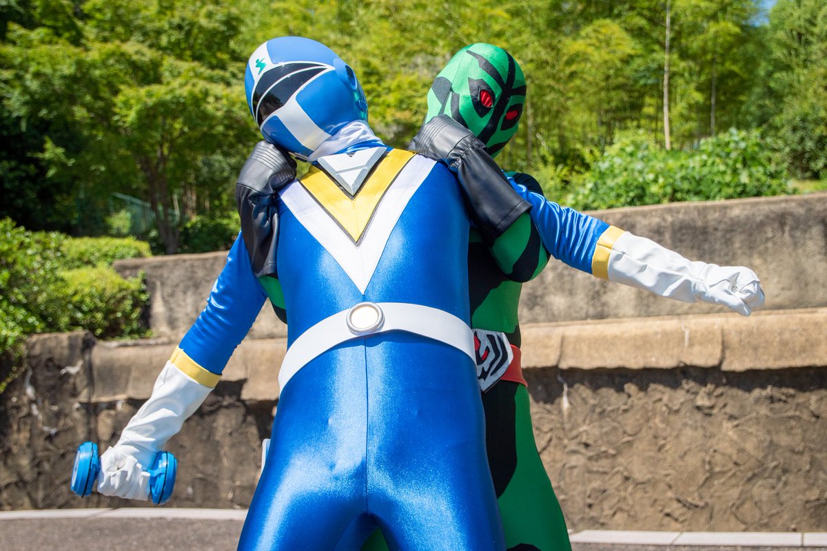 そういやこの2キャラって、実際のスーアクさんが同じだったような #コスメルin安満遺跡公園 #ファイブブルー 🆚 #ヒドラー兵 #コスプレ #噛みつき twitter.com/fbfighter07/st…