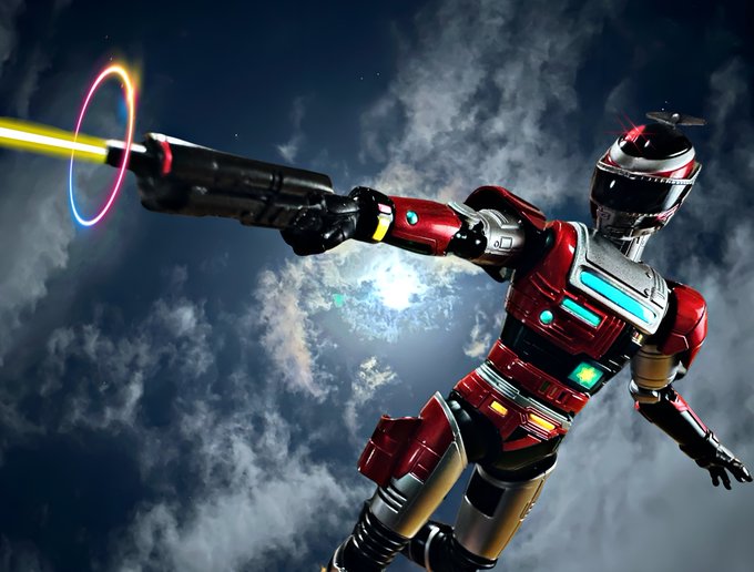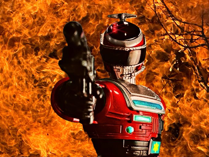 #夜のフィギュア撮影会 1/20お題 『熱』 炎の似合う熱い男 ファイヤー 特警ウィンスペクターの隊長ファイヤーで今日のお題の一枚です😁 今日は休む予定だったのですが、手術後寝たきりで暇だったのと、お題にちょうどいいのがあったので作ってみました😆 #オモ写 #特警ウィンスペクター #ファイヤー