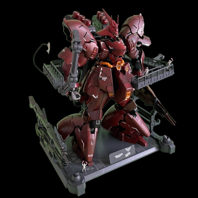 解体匠機風 RGサザビー& 装備用整備台完成!! #みんなでガンプラ #ガンプラの画像を貼るとRTされると聞いて #gunplatogether #公式画像とうちの子並べようぜ #ガンプラはどんな自由な発想で作ってもいいんだ #ファクトリーヨシ