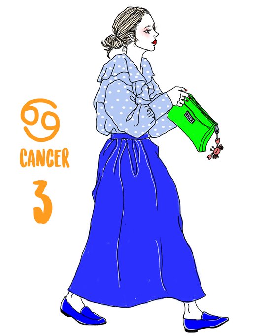 2022年の蟹座さん ラッキーカラー:ブルー ラッキーナンバー:3 だそうです 幸あれ🍀 #イラスト #イラストレーター #イラストレーション #イラスト好きさんとつながりたい #イラスト練習中 #女の子イラスト #ファッションイラスト #ファッションイラストレーター