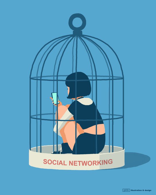 作品タイトル「SNS CAGE」 (SNS ゲージ) SNSを通して世界と繋がれる現代社会。 一見 自由なように見えるけど 鳥かごに閉じ込められた鳥のようにも見える。 #ファッションイラスト #art #アート