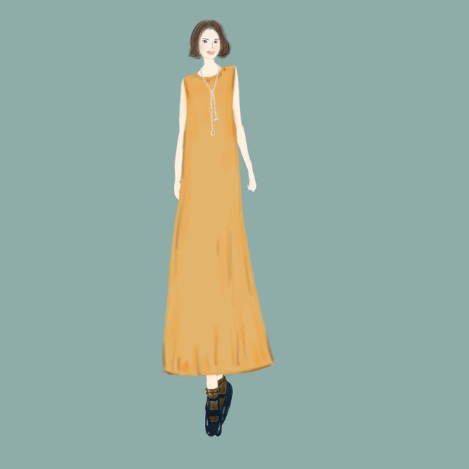 ベージュワンピ&シルバーネックレス #イラスト #イラスト好きな人と繋がりたい #ファッション #ファッションコーデ #ワンピース #procreate #illustrate #illustration #nft #nftstudio #nftart