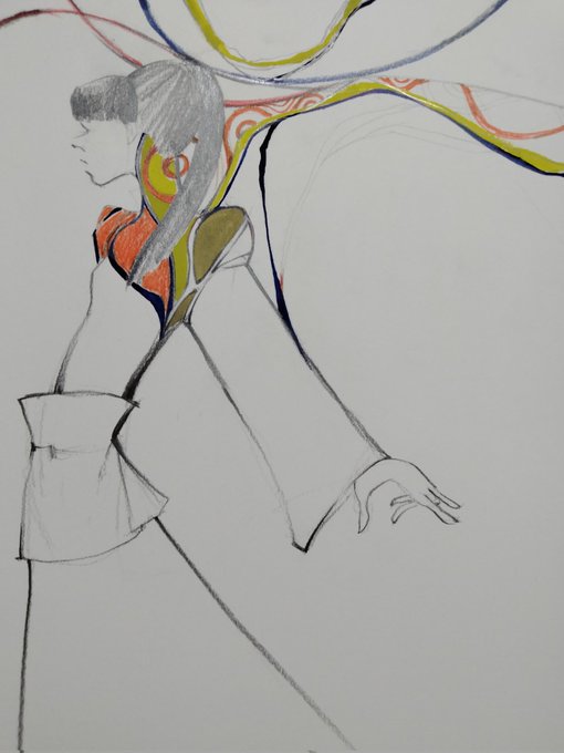 片付け中 何枚か載せてみてる 息を吹き込んでみる dancing ’01 #illustraion #fashionillustration #鉛筆画 #色鉛筆画 #流れる音楽 #流動的 #好きな色 #イラスト #ファッションデザイン画