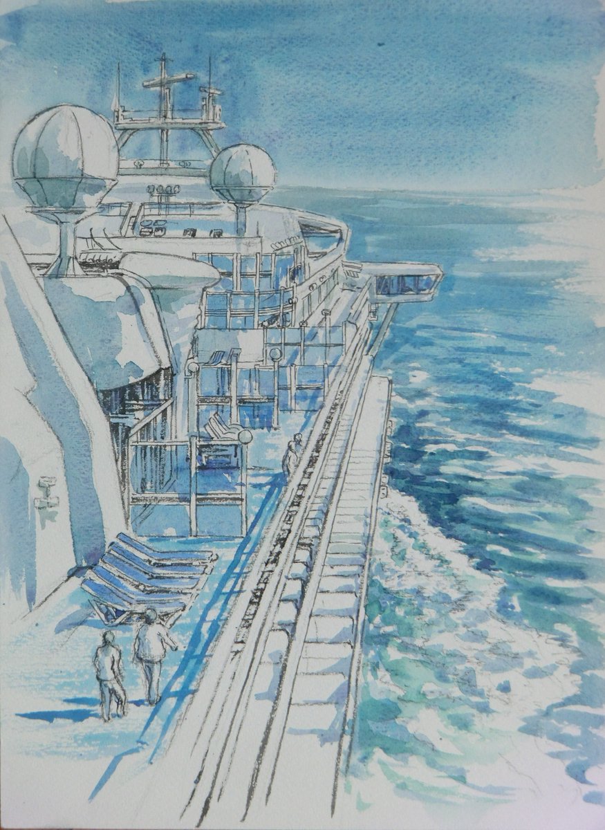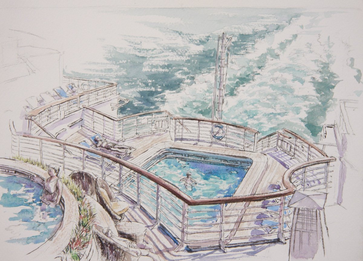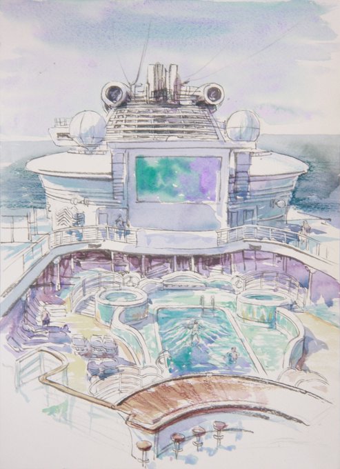 「ダイアモンドプリンセスの船旅 2014」 Voyage of Diamond Princess. #diamondprincess #voyage #princesscruise #ダイアモンドプリンセス #プリンセスクルーズ #船旅 #水彩スケッチ #ファブリアーノ水彩紙 #クサカベ #ホルベイン #棚町宜弘 #水彩スケッチ